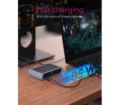 When you connect the hub to your notebook, your notebook can draw up to 85 watts of charging power via the Power Delivery feature when needed. With 85 watts notebook charging power, the IB-HUB801-TB4 outperforms most comparable Thunderbolt™ 4 hubs, which usually deliver up to 60 watts in comparison.