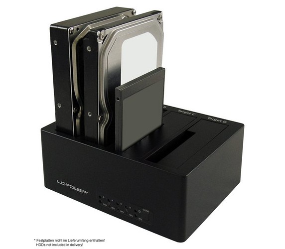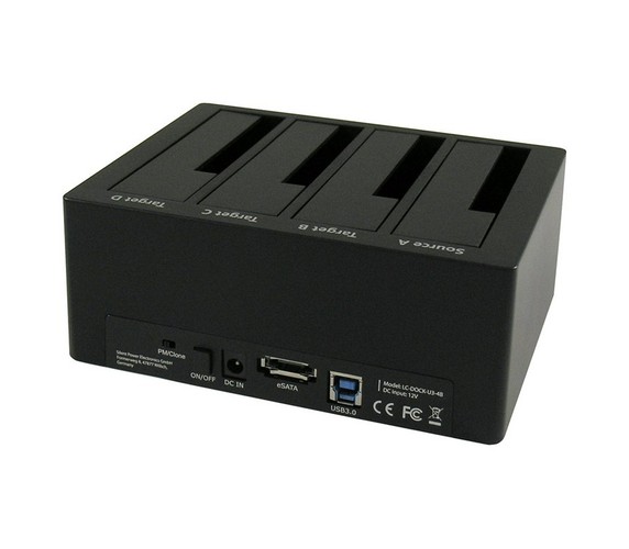 USB 3.0 & eSATA 4-bay HDD docking station with one touch cloning feature.
