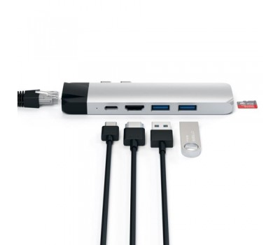 Introducing Satechi Aluminum Type-C Pro Hub with Ethernet, exclusively designed for 2016/2017/2018 MacBook Pro 13” and 15” models. Featuring a Gigabit Ethernet port, USB-C Power Delivery (up to 87W), 2 USB 3.0 ports and a micro SD card slot to fulfill all your data transfer needs. With its brushed aluminum finish, the Type-C Pro Hub with Ethernet complements your Apple accessories and completes your desk set-up. Simply, plug and play to expand your MacBook Pro’s capabilities.