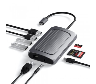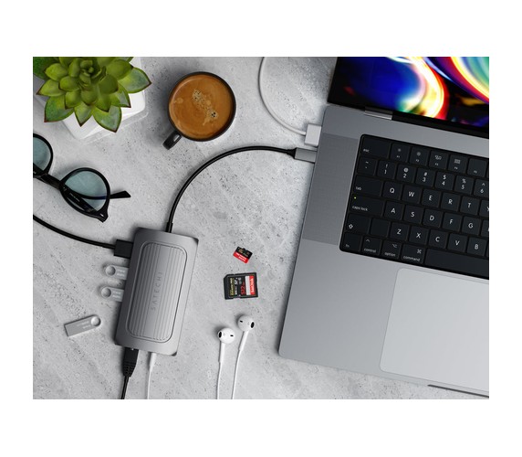 Maximize your workspace efficiency with the Satechi USB-4 Multiport Adapter with 8K HDMI. Featuring next-gen USB4 protocols for better bandwidth management and data transfer, stunning 8K HDMI display, fast 10 Gbps USB-A data ports, Gigabit Ethernet, 100W USB-C PD charging, and micro/SD card readers, the USB-4 Multiport Adapter has it all – complete with a rugged design for better heat dissipation.