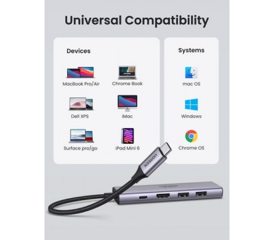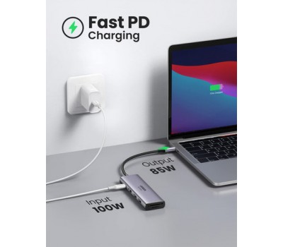 Turn a single USB-C port into 4K@60Hz HDMI port for display expansion,100W PD charging, two card slots for data transfer and two USB3.0 ports for data transfer.