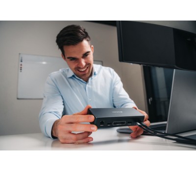 The high‑performance docking station features one USB‑C 3.2 Gen2 and two USB‑A 3.2 Gen2 ports for rapid data transfer plus USB‑A 480 Mb/s and RJ45 ports, and SD/MicroSD slots to ensure versatile connectivity.