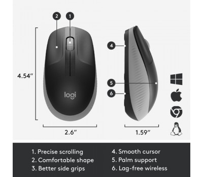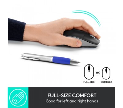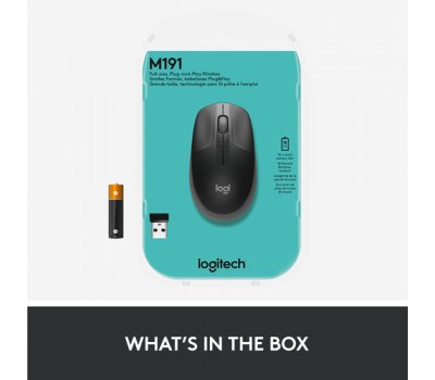 Logitech M190 is a large-size wireless mouse with a contoured design that follows the natural curve of medium to large hands. All-day comfort thanks to the arched palm support and special button scooping for ideal finger placement. You’ll work wirelessly and move freely – from up to 10 metres* away – with virtually no delays or dropouts. No cable means no clutter on your desk, while the 18-month* battery life means you can work worry free thanks to the power-saving mode that automatically kicks in when you’re not using the mouse. You’ll get great quality navigation with precision tracking and line-by-line scrolling at an affordable price.