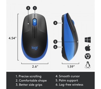 Logitech M190 is a large-size wireless mouse with a contoured design that follows the natural curve of medium to large hands. All-day comfort thanks to the arched palm support and special button scooping for ideal finger placement. You’ll work wirelessly and move freely – from up to 10 metres* away – with virtually no delays or dropouts. No cable means no clutter on your desk, while the 18-month* battery life means you can work worry free thanks to the power-saving mode that automatically kicks in when you’re not using the mouse. You’ll get great quality navigation with precision tracking and line-by-line scrolling at an affordable price.