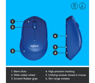 With the same click feel and over 90% noise reduction* compared to classic mice, M330 SILENT PLUS offers a quiet experience for yourself and those around you. It has a long-lasting 24-month battery life with auto-sleep and a powerful 10-meter wireless range**. Plus, it’s designed with contoured grips made of soft rubber for total comfort. Just plug the tiny USB receiver and it works with Windows®, Mac, ChromeOS™ or Linux®. Finally, the Logitech® Advanced Optical Tracking guarantees smooth and precise moves on almost any surface.