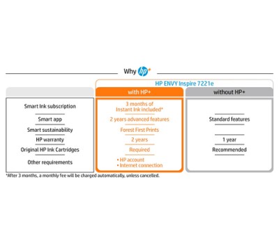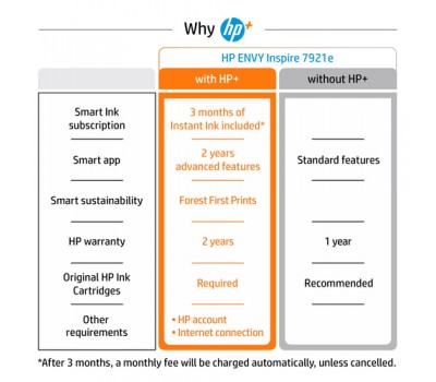 This is an HP+ enabled printer. Choose HP+ at product setup to activate benefits. HP+ requires an HP account, ongoing connection to the internet, and exclusive use of Original HP Ink cartridges for the life of the printer. More at: http://www.hp.com/plus
