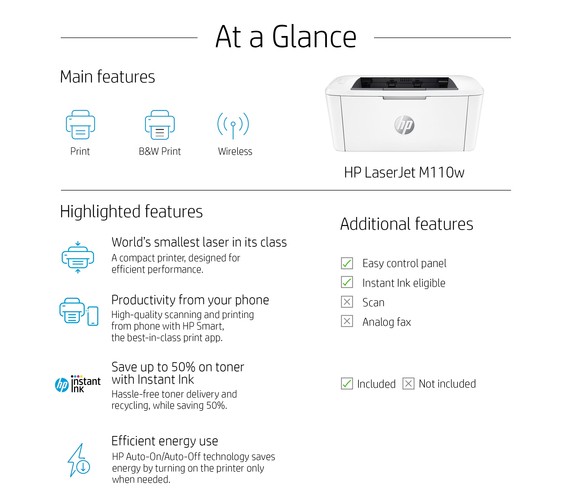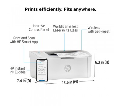 Prints efficiently. Fits anywhere. An efficient, high-quality laser printer that fits your space and budget. Get fast printing from HP's smallest laser in its class,[1] plus the time-saving HP Smart app.[2,3] Count on professional-quality laser printing and seamless setup.