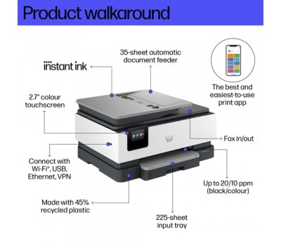 Print at home like a Pro. Fax included. Say hello to the professional colour inkjet printer for your home office from the World’s #1 Printer Company, paired with the easiest-to-use print app. Enjoy easy printing designed to make you succeed at work. Fax included.[1,2]