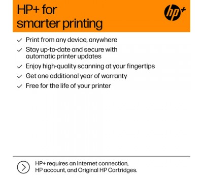 This is an HP+ enabled printer. Choose HP+ at product setup to activate benefits. HP+ requires an HP account, ongoing connection to the internet, and exclusive use of Original HP Ink cartridges for the life of the printer. More at: http://www.hp.com/plus