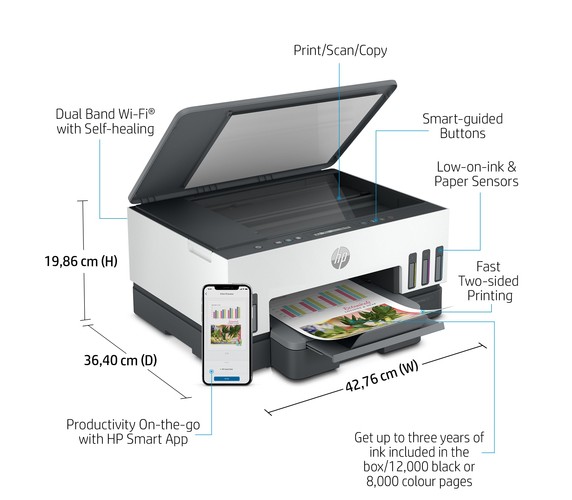 Full of features. Full of savings. Printing is seamless from start to finish with a cartridge-free printer designed for the whole family. Create a variety of outstanding-quality colour documents at a low cost, with up to three years of Original HP ink included in the box.[1]