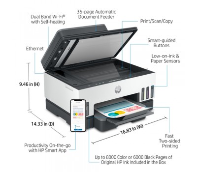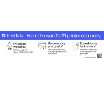 Full of productivity. Full of savings. Connect, work, and boost business productivity with the seamless printing experience of this cartridge-free printer. Plus, get outstanding print quality at a low cost, with up to three years of Original HP ink included.[1]
