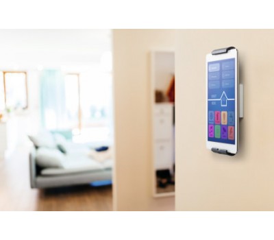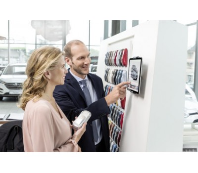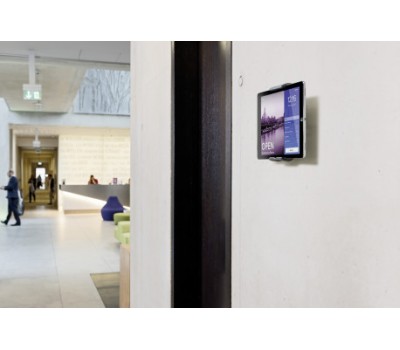 A premium wall-mounted tablet holder that has been designed for many different areas of application, including trade fairs, office areas as well as sales and exhibition rooms. The holder's sleek design enables flat wall mounting.