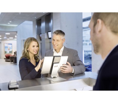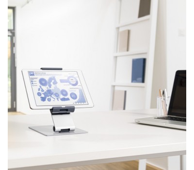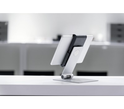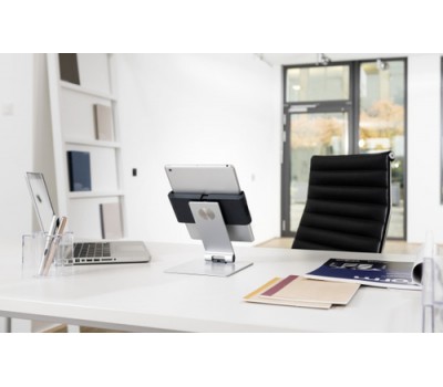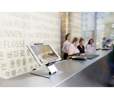 The premium-quality desktop tablet holder is suitable for the use of tablets in offices, at reception desks, in sales and exhibition rooms. With its stylish design and excellent stability, the TABLET HOLDER TABLE is also an ideal tool for presentations.