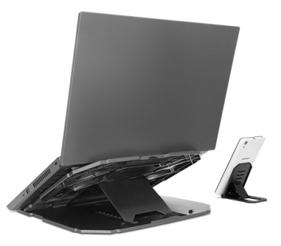 The Lenovo 2-in-1 Laptop Stand was designed to solve two frustrating distractions in one: laptop overheating and painfully poor ergonomics. The sturdy, non-slip stand allows you to ergonomically angle your laptop and phone to prevent aches and tension, while ventilation holes improve your laptop’s cooling performance.