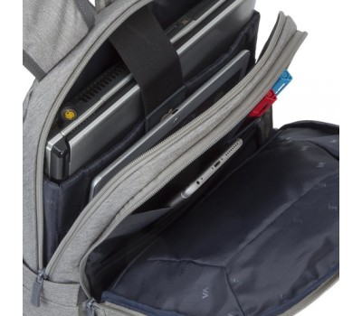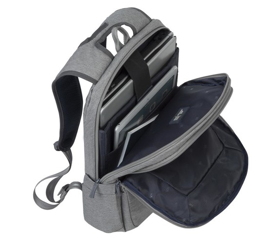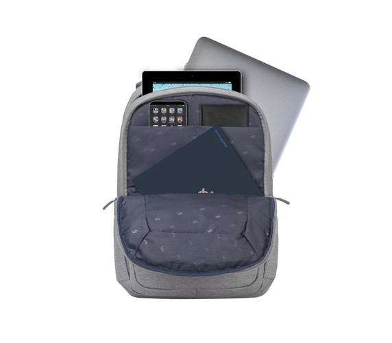 - Main vertical load compartment has soft sides and a strap for your 15.6" laptop.